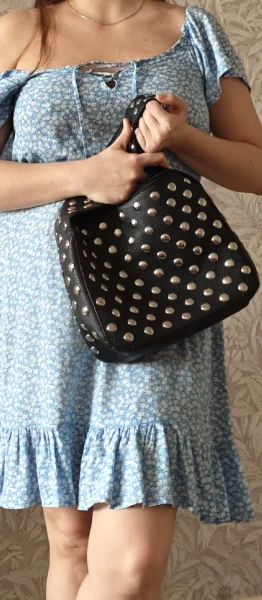 Affirmez votre style avec le Sac Touch Of Extra, un sac baguette à rivets qui mêle esthétique punk et élégance urbaine. Ses clous métalliques signature lui confèrent un caractère fort et assumé, parfait pour celles qui n'ont pas peur de se démarquer.